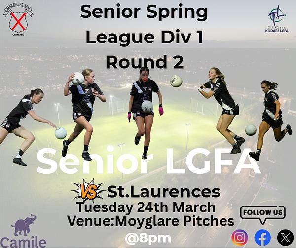 Best of luck to our senior LGFA 1 team who take on St.Laurences tonight in the Div 1 spring league on the Moyglare pitches!