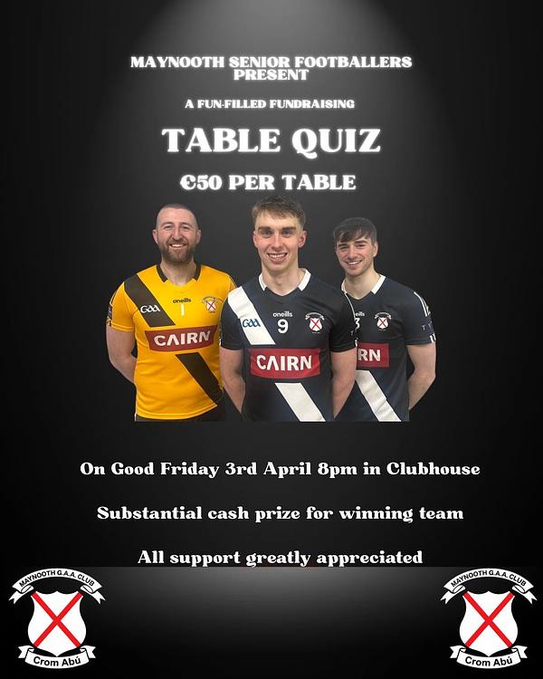 Our senior footballers are organising a fundraising table quiz this Friday night in the club at 8pm!